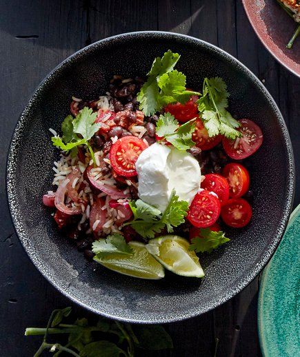 This recipe for Mexican Black Bean Bowl only takes 15 minutes of prep time and serves 4. Check it out below: