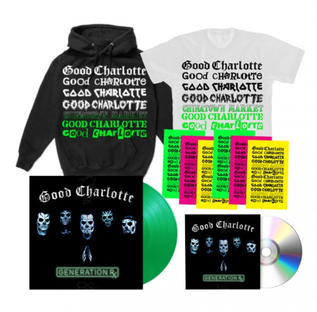 Due for release on September 14, 2018 via a newly minted global partnership between the band’s MDDN label and BMG, Generation Rx is available for pre-order starting today HERE. The band also launched a collaboration with LA streetwear brand Chinatown Market, including limited edition shirts, sweatshirts, stickers, and more. Chinatown Market for Good Charlotte pre-order bundles are available exclusively through Good Charlotte’s online store.