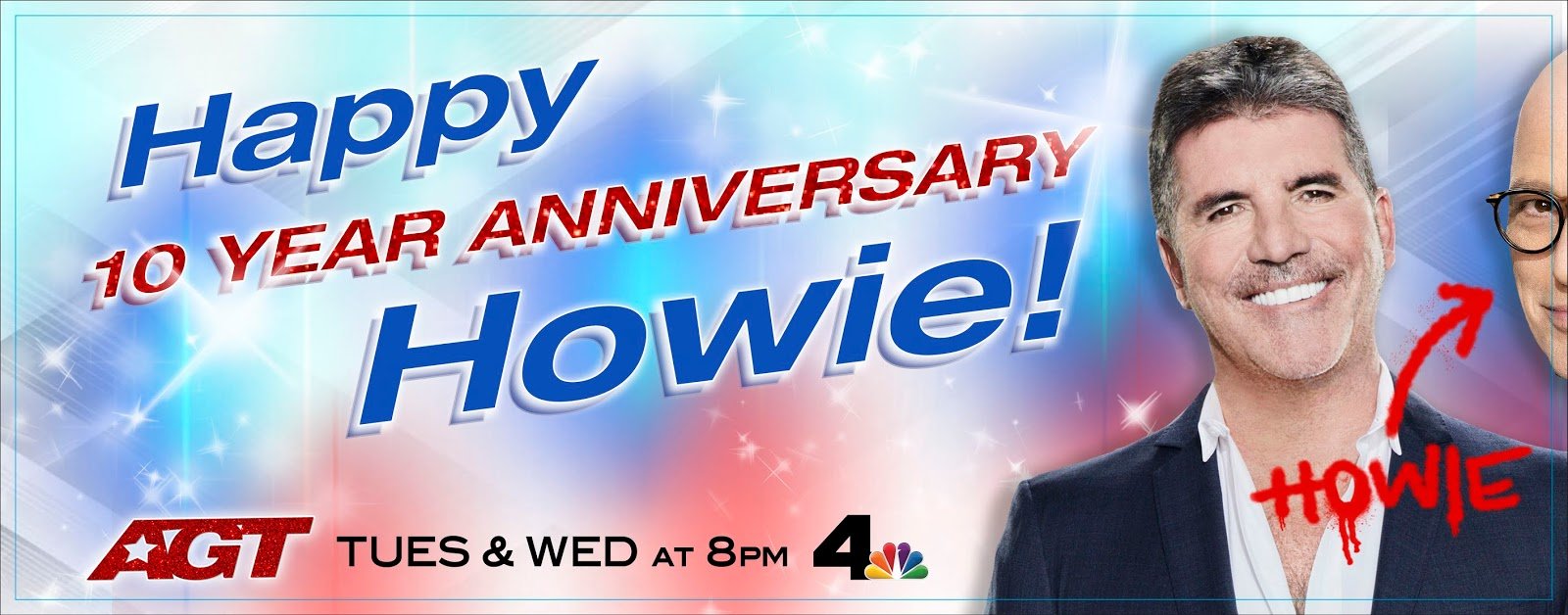 To celebrate the milestone, fellow judge and executive producer Simon Cowell brought a billboard on the famous Sunset Boulevard in Hollywood for saying “Happy 10 Year Anniversary Howie” with a playful picture of the two of them with Howie’s face cut-off.