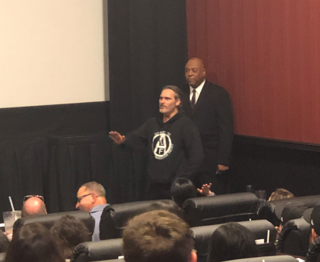 Last night, fans of “Joker” received a special surprise when the Joker himself, Joaquin Phoenix, stopped by multiple screening of the film at Alamo Drafthouse in Downtown Los Angeles. Phoenix met fans at each theater, answer questions, and posed for selfies.