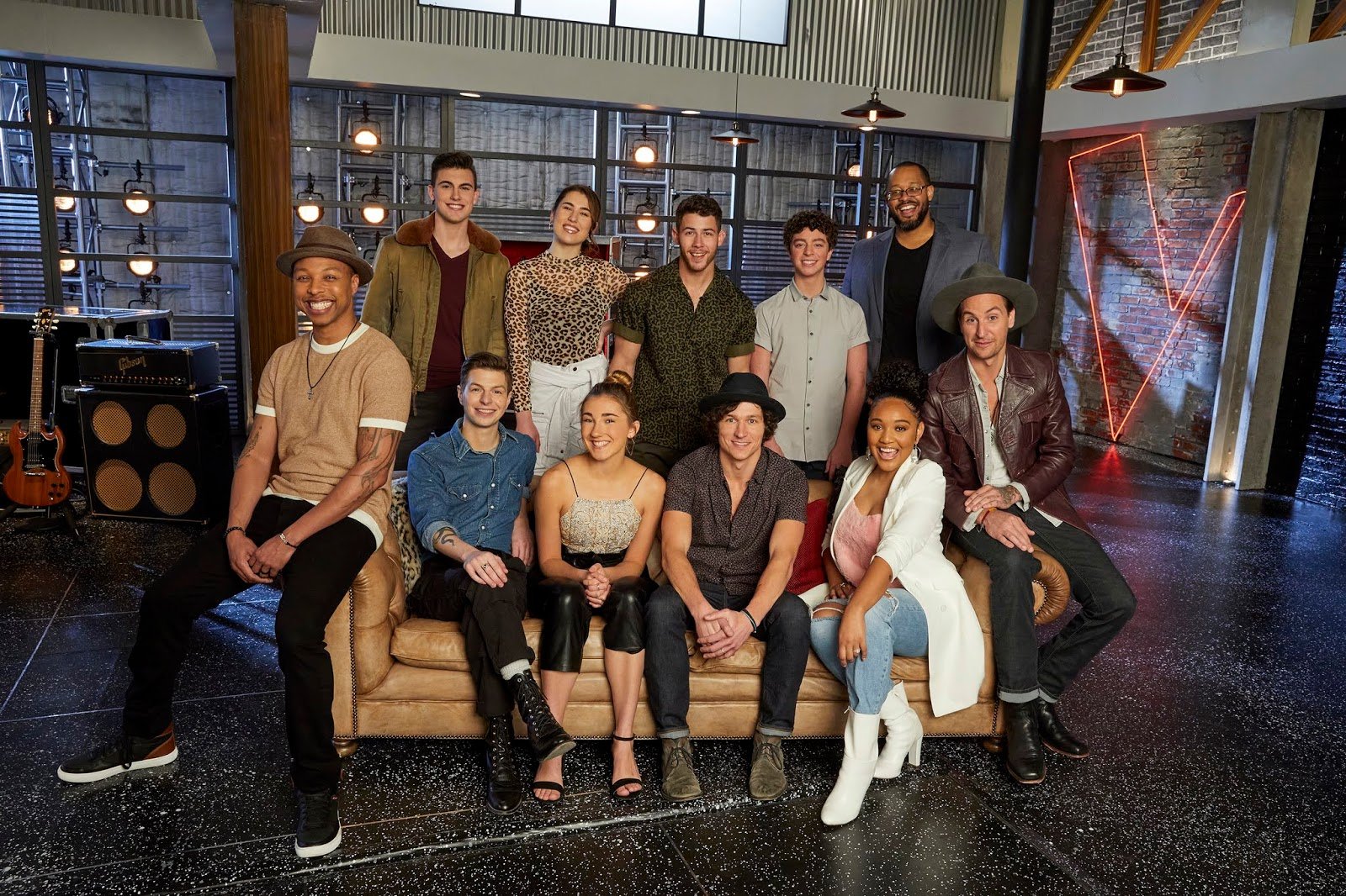 | The Voice’s Team Nick: Pictured: (l-r) Samuel Wilco, Michael Williams, Jacob Miller, Joana Serenko, Allegra Miles, Nick Jonas, Kevin Farris, Tate Brusa, Arei Moon, Roderick Chambers, Anders Derup