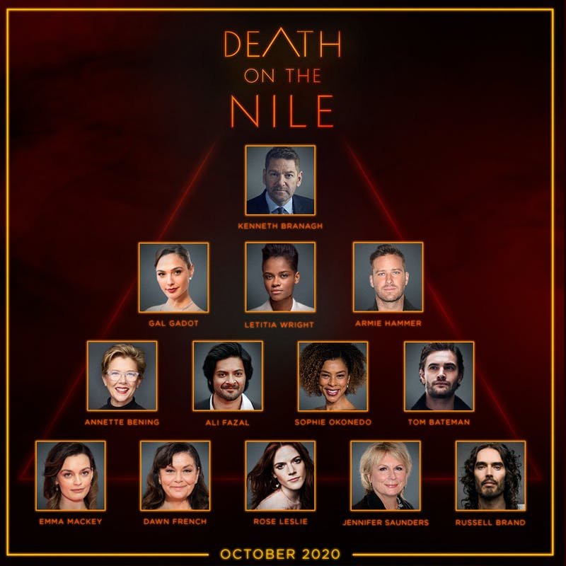 Check out the first look at “Death on the Nile” starring Tom Bateman, Rose Leslie, Armie Hammer, Letitia Wright, Annette Bening, Russell Brand, Ali Fazal, Dawn French, Gal Gadot and Kenneth Branagh who stars and directs.