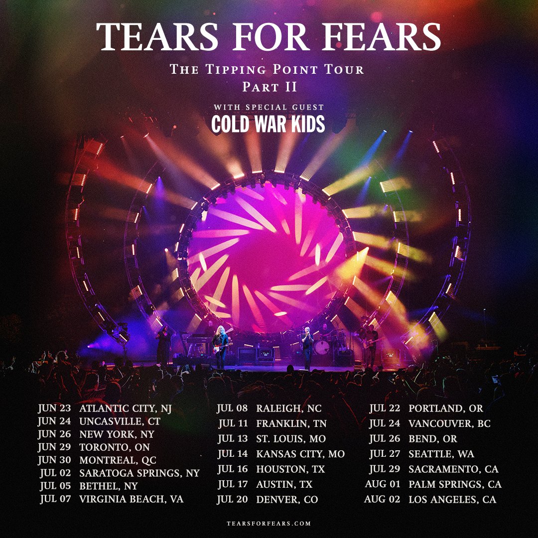 Tears For Fears, have announced their North American 2023 summer tour — The Tipping Point Tour Part II – with special guest Cold War Kids. Produced by Live Nation, the 22-city tour kicks off on June 23 at Hard Rock Live at Etess Arena in Atlantic City, NJ making stops across North America in New York, Toronto, Houston, Seattle, and more before wrapping up in Los Angeles, CA at the Hollywood Bowl on August 2.