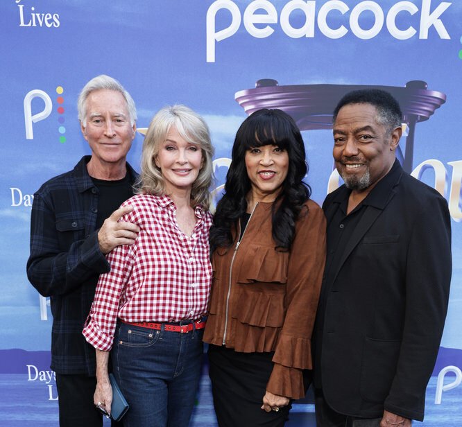 DAYS OF OUR LIVES -- “Day of Days 2023” -- Pictured: (l-r) Drake Hogestyn, Deidre Hall, Jackee Harry, Jim Reynolds at Peacock Place, L.A. Live on October 21, 2023 -- (Photo by: Todd Williamson/Peacock)