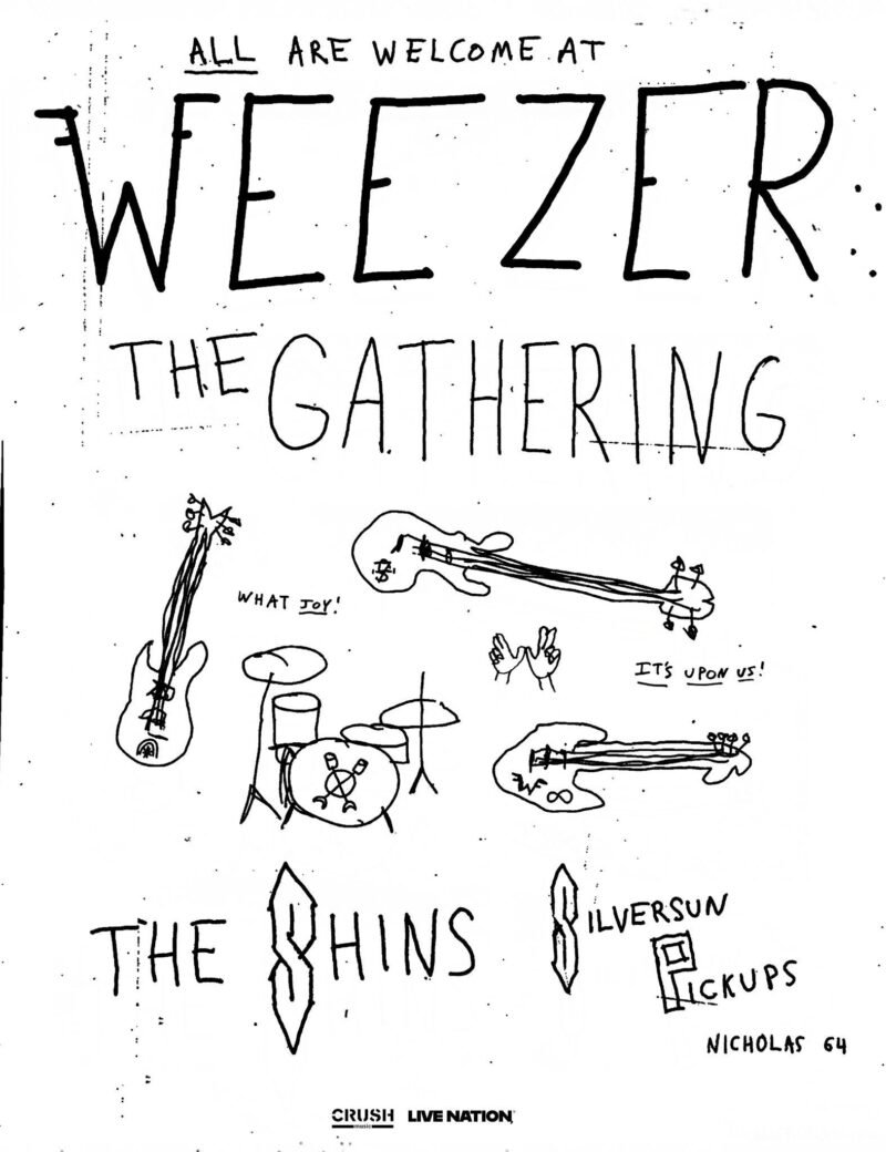Weezer is hitting the road with the “Weezer: The Gathering,” a North American tour set for fall. Promoted by Live Nation, the 32-city arena run with special guests The Shins and Silversun Pickups kicks off September 8 in Sacramento, CA and travels across North America before wrapping up on October 24 in Los Angeles, CA.
