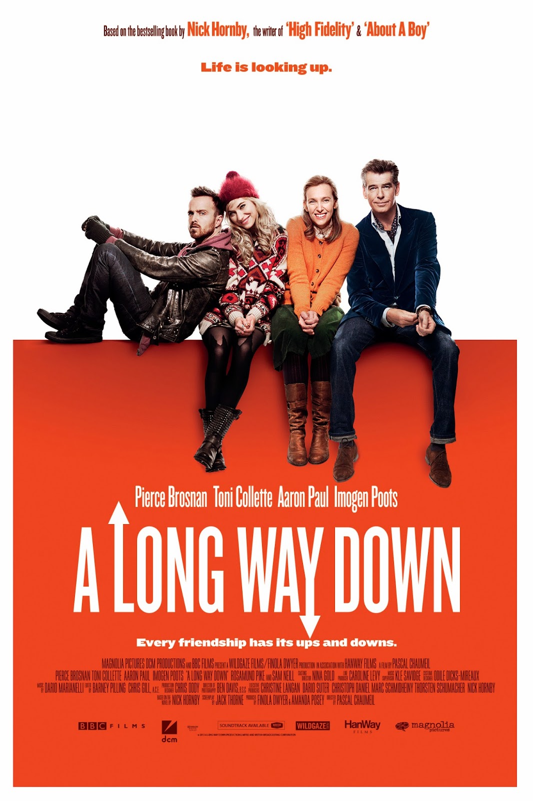 Check out the poster for the upcoming movie “A Long Way Down.” The movie, based on a novel by Nick Hornsby, stars Pierce Brosnan, Toni Collette, Imogen Poots and Aaron Paul. Look for the movie in VOD on June 6th and in theaters on July 11th.