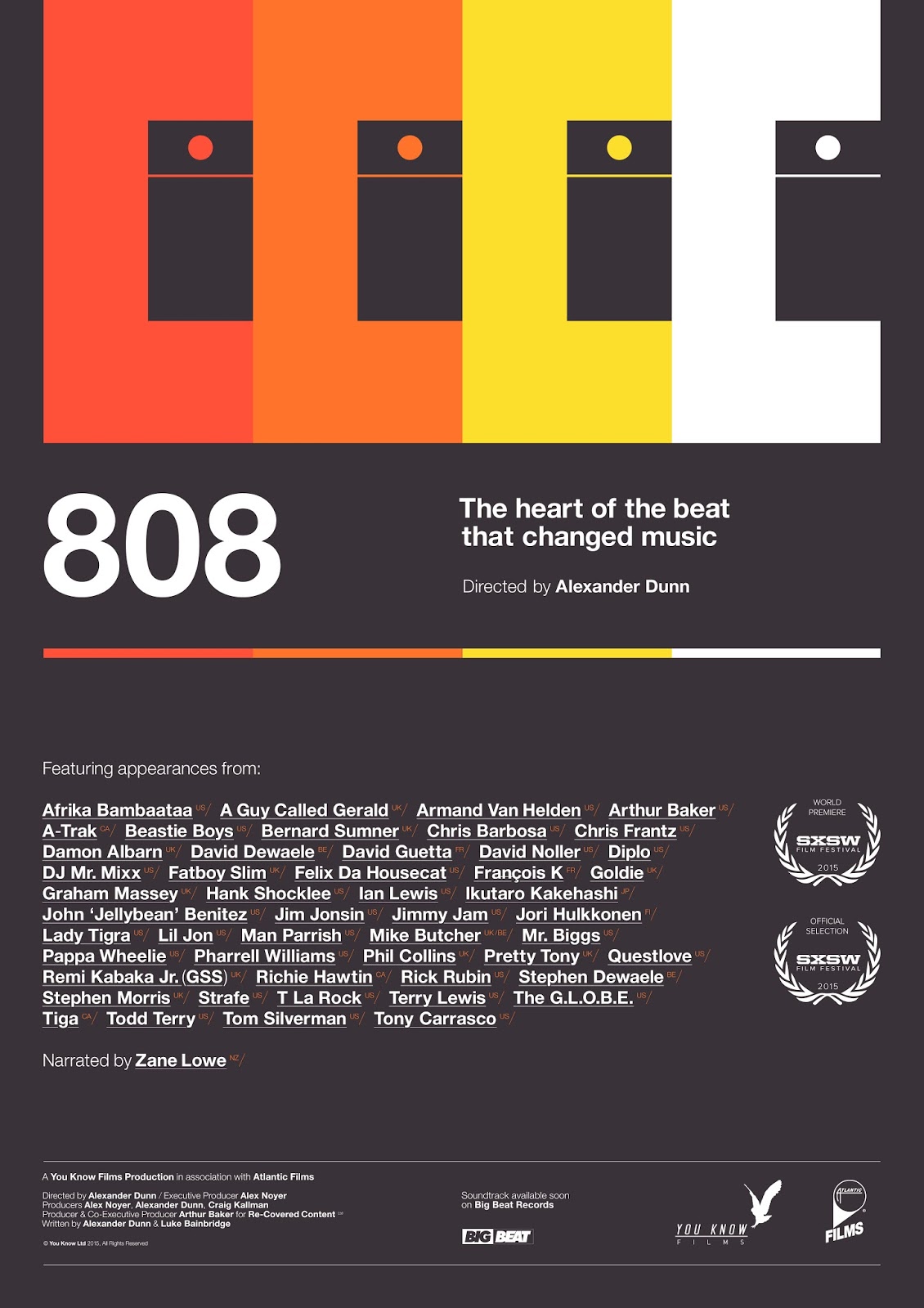 “808” is a music documentary that tells the untold story of how the Roland TR-808 Drum Machine changed the course of music history. Featuring appearances and commentary from Pharrell, Beastie Boys, David Guetta, Phil Collins, Rick Rubin, Lil Jon, Afrika Bambaataa, Questlove, Norman Cook (Fatboy Slim), Diplo, Goldie and more.