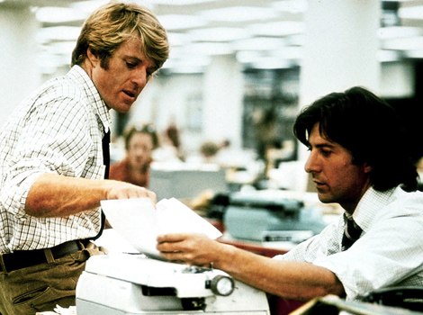 | Robert Redford and Dustin Hoffman in a scene from “All The President’s Men” |