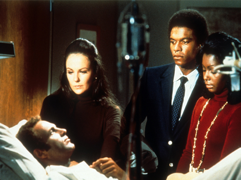 James Caan, Shelley Fabares, Billy Dee Williams and  Judy Pace in a scene from  the 1971 film “Brian’s Song.”