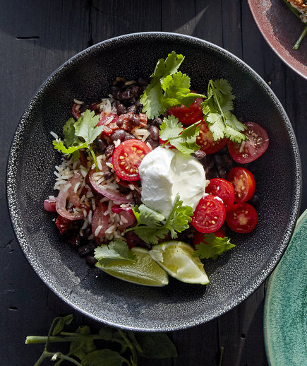 This recipe for Mexican Black Bean Bowl only takes 15 minutes of prep time and serves 4. Check it out below: