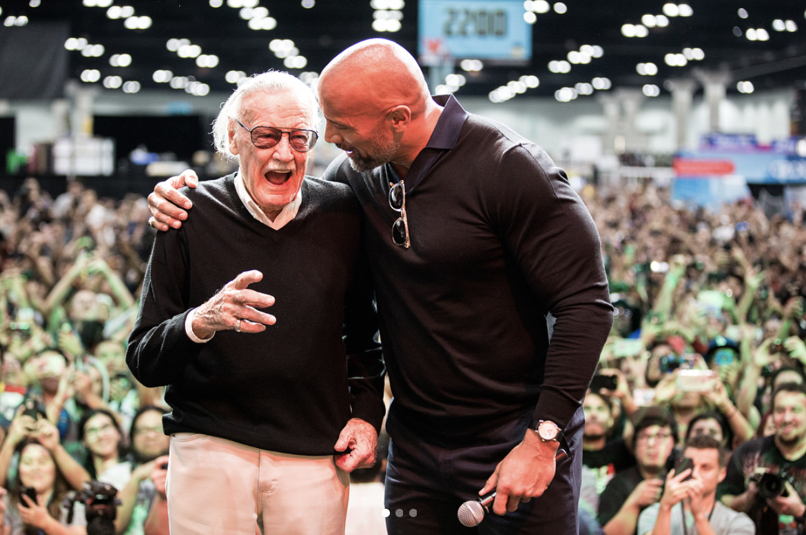 | Stan Lee and Dwayne Johnson at 2017 LA Comic Con |