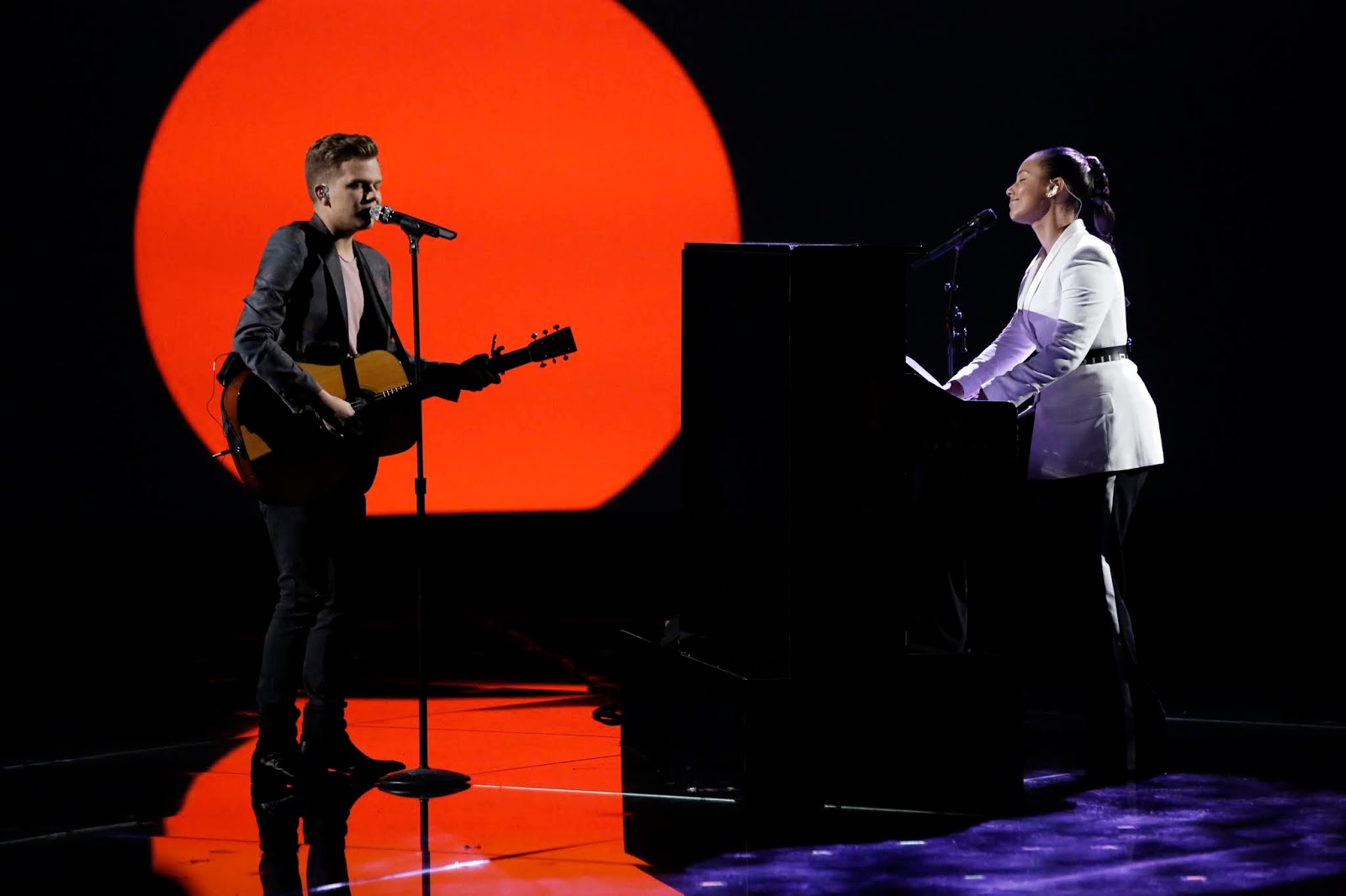 Britton Buchanan and Coach Alicia Keys perform on Night 1 of  “The Voice” Live Finale