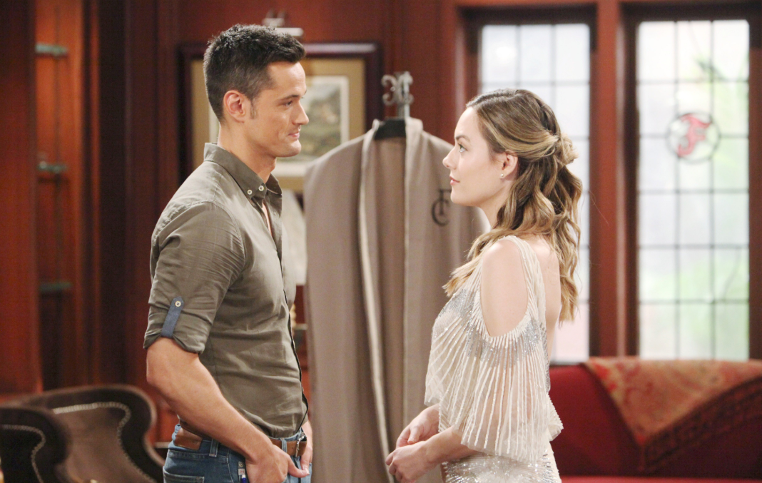 Hope is taken aback when Thomas surprises her with a Forrester Original gown and a kiss