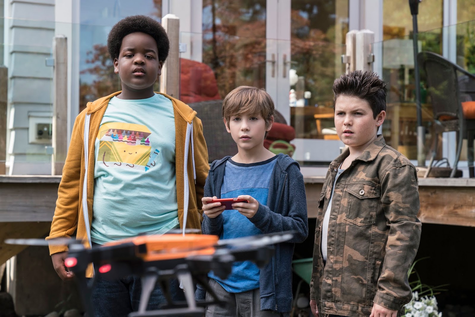 After being invited to his first kissing party, 12-year-old Max (Room’s Jacob Tremblay) is panicking because he doesn’t know how to kiss. Eager for some pointers, Max and his best friends Thor (Brady Noon, HBO’s Boardwalk Empire) and Lucas (Keith L. Williams, Fox’s The Last Man On Earth) decide to use Max’s dad’s drone – which Max is forbidden to touch – to spy (they think) on a teenage couple making out next door.