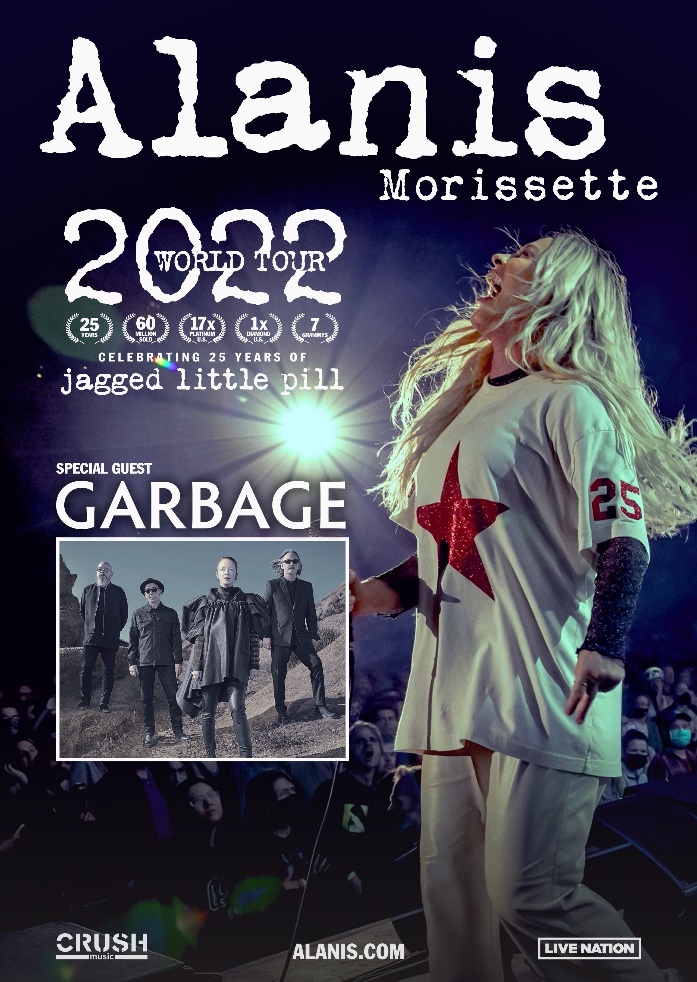 Seven-time Grammy® Award-winning singer/songwriter Alanis Morissette announced North American dates for her world tour celebrating 25 years of JAGGED LITTLE PILL. The new dates follow Alanis’ sold out #1 female-fronted tour from 2021, which was also one of the Top Worldwide Tours of 2021 selling over 500,000 tickets.