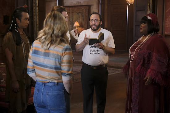 Here’s a sneak peek at the upcoming episode of CBS’s hit comedy “Ghosts.” In the episode entitled “Alberta’s Podcast,” “Sam decides to host a podcast exploring the mystery surrounding Alberta’s death. Also, Hetty develops an unusual relationship with a broken washing machine. The series stars Rose McIver (Samantha) ; Richie Moriarty ( Pete) ; Utkarsh Ambudkar (Jay) ; Brandon Scott Jones(Isaac ); and Danielle Pinnock ( Alberta). Guest Cast: Rodrigo Fernandez-Stoll (Todd); Ravi Patel (Lewis); Mercedes Morris (Clara Brown); Daniel Brochu (Club Owner); Madeleine Eddy (Sally); Andrew Searles (Stage Manager); Justin Johnson (Stagehand); Guido Grasso (Mobster #1); RJ Copan (Mobster #2); Josh Johnston (Delivery Man). WRITTEN BY: Talia Bernstein; DIRECTED BY: Trent O’Donnell.” Check out some photos below.