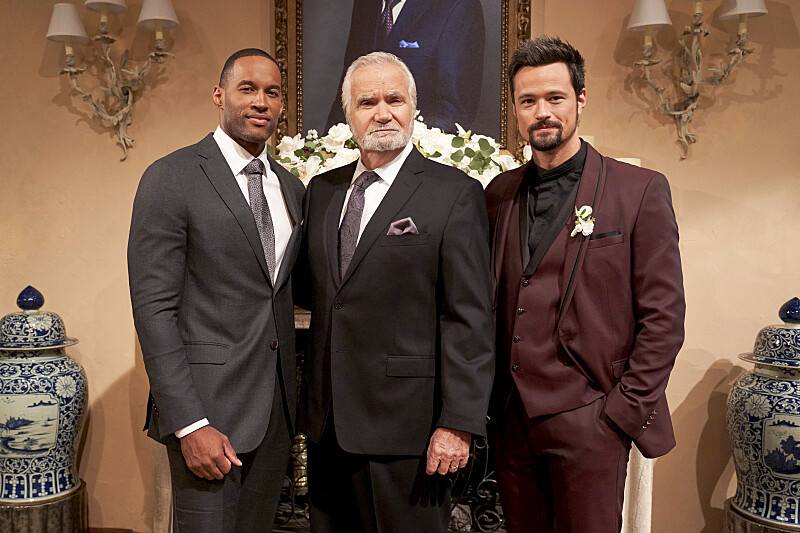 THE BOLD AND THE BEAUTIFUL, scheduled to air on the CBS Television Network. Pictured: Lawrence Saint-John as Carter Walton, John McCook as Eric Forrester and Matthew Atkinson as Thomas Forrester. Photo: Adam Torgerson/CBS ©2022 CBS Broadcasting, Inc. All Rights Reserved.
