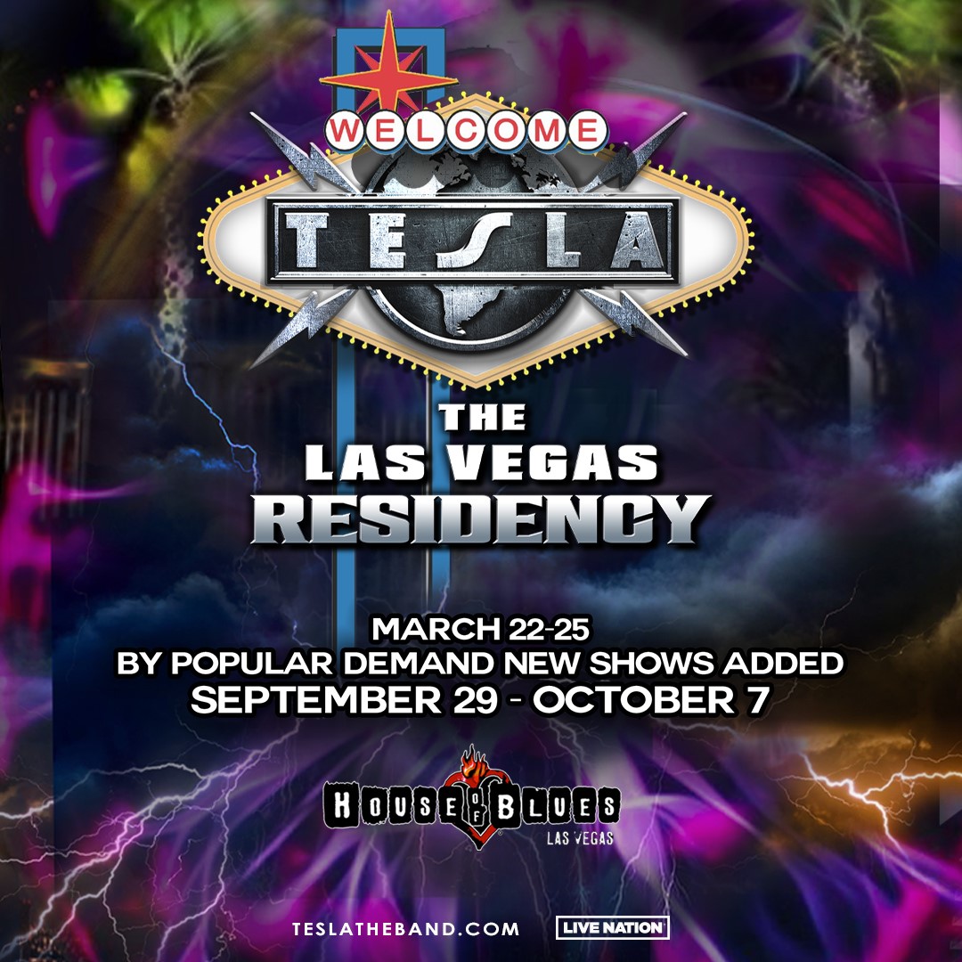 Due to overwhelming demand and following a sold-out opening weekend, legendary rockers TESLA have added five additional shows to their residency. TESLA: The Las Vegas Residency at House of Blues Las Vegas at Mandalay Bay Resort and Casino. Celebrating their 36 years of entertaining rock audiences around the world, TESLA: The Las Vegas Residency will add five additional dates, beginning with Friday, Sept. 29, 2023 at 8:30 p.m. Tickets start at $59.50 plus applicable fees and go on sale Friday, March 24, 2023 at 10 a.m. PT.
