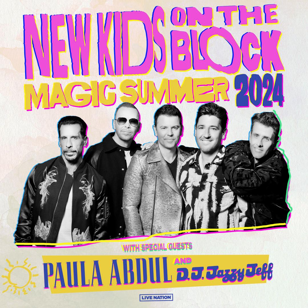 New Kids on the Block have announced THE MAGIC SUMMER 2024 TOUR. Reimagining the smash 1990 tour of the same name, Donnie, Joey, Jordan, Jonathan & Danny will bring back the magic for fans old and new, this time with very special guests Paula Abdul and DJ Jazzy Jeff. As announced on GMA, the tour, produced by Live Nation, will kick off on June 14 and hit over 40 cities including Chicago, New York and Los Angeles.