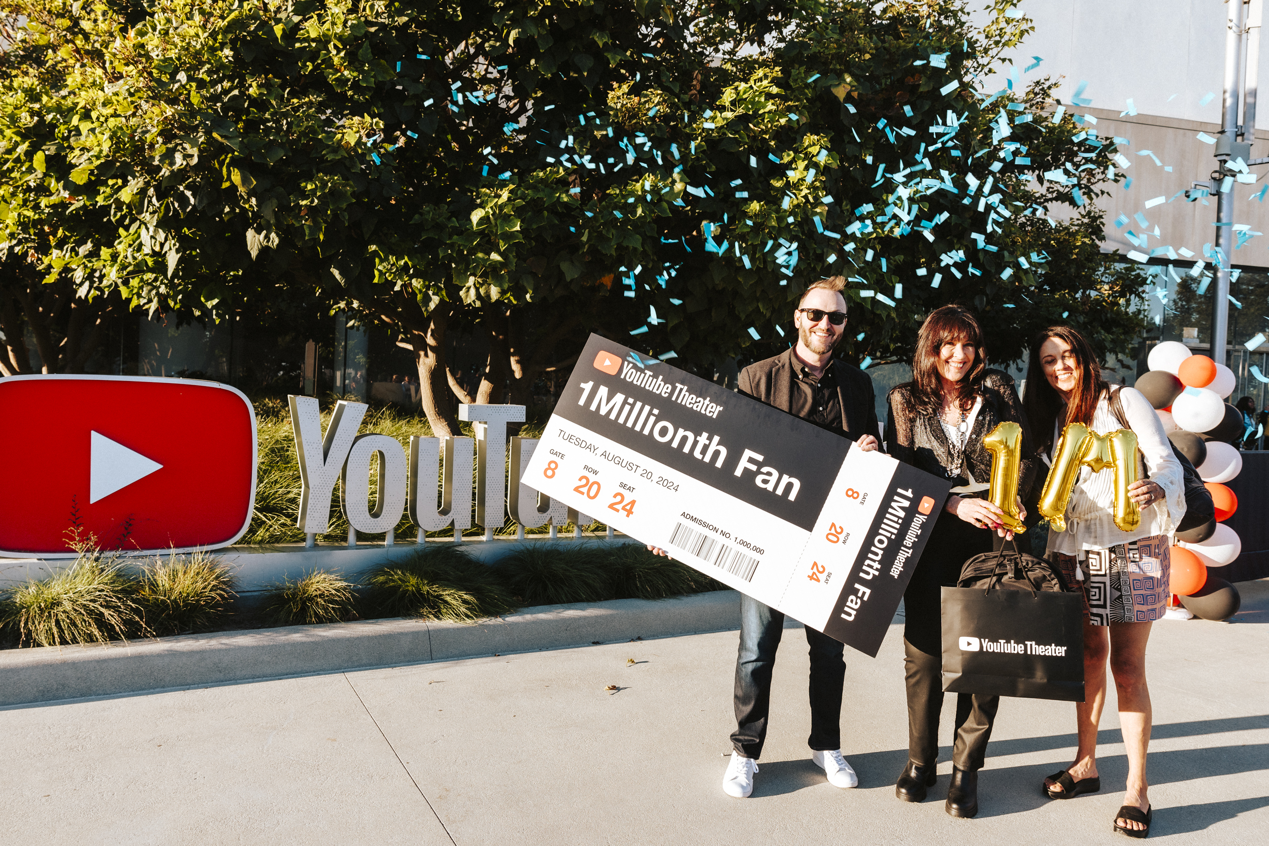 As the venue approaches its 3-year anniversary, YouTube Theater at Hollywood Park celebrated a major milestone on Tuesday, August 2oth by welcoming its 1 millionth guest into the venue. Russell Gordon, Vice President & General Manager of YouTube Theater, surprised native Angeleno Anne Arnold – the lucky fan attending the Howard Jones & ABC with Haircut One Hundred concert – with a VIP package.